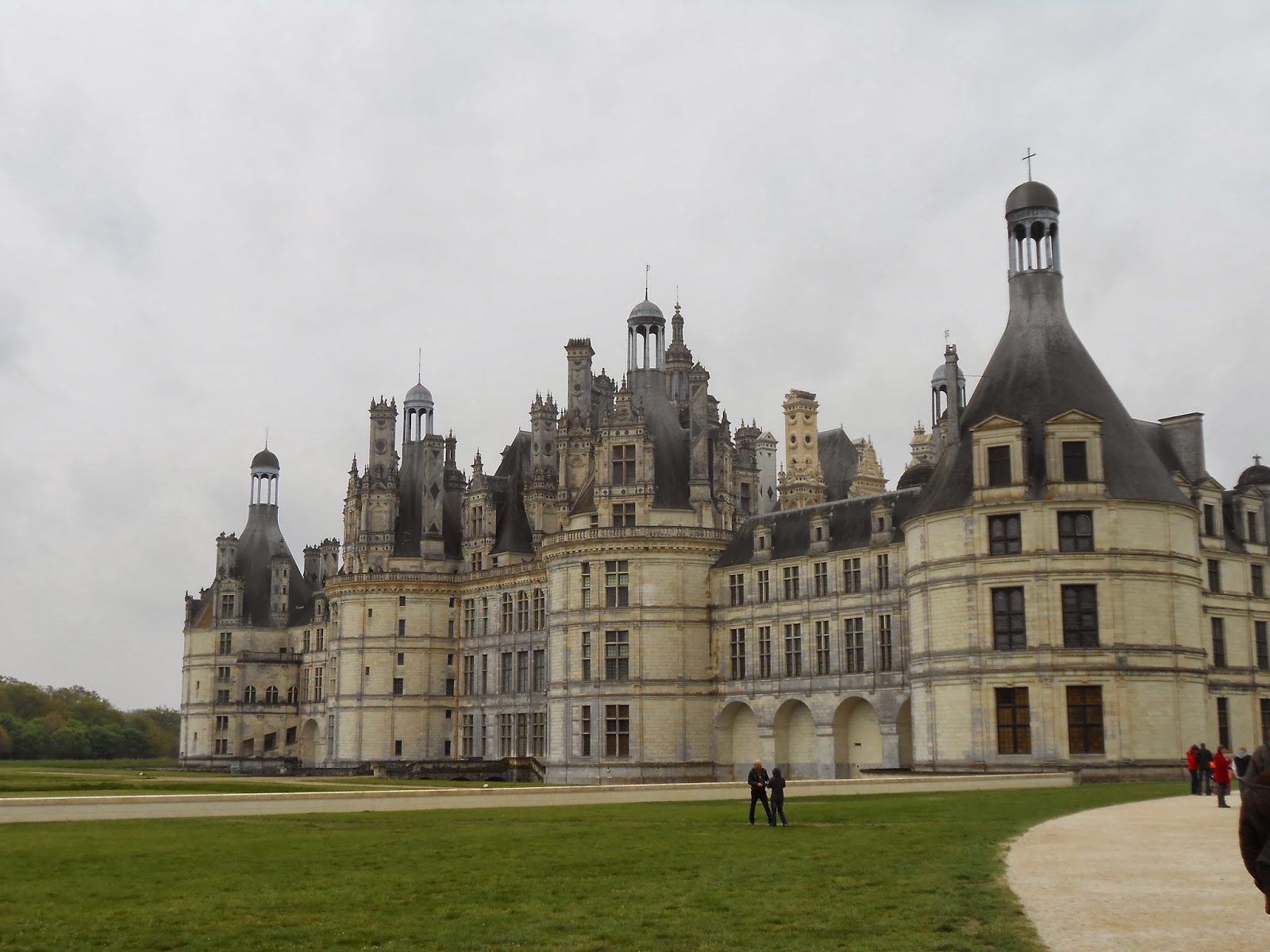 Just inside the entrance to the castle grounds there were many outbuildings and tents set up where vendors were selling souvenirs, wine, cheese, and other items. There were also several restaurants there, and we thought it would be a good idea to have a bite before touring the huge castle. We dined leisurely on gallettes, quiche Lorraine, and herb-roasted chicken before finally making our way into the magnificent chateau. Chambord is huge and very ornate. It is said there are 440 rooms, 282 fireplaces, and 84 staircases. There are very few furnishings inside. The massive structure is extremely expensive to restore and maintain; it is an ongoing work. What we saw was really quite amazing.